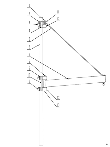 這簡(jiǎn)易種微型電動(dòng)葫蘆支架的特征是:上掛耳(11)和下掛耳(13)上對(duì)應(yīng)設(shè)有固定上固定軸銷(1)和下固定軸銷(8)的緊固螺絲(12)。支撐管組件(7)與加強(qiáng)條(5)的連接端設(shè)有支撐管套(18)。立柱(6)由圓鋼或圓管制成,直徑不小于48毫米,圓管的壁厚不小于4毫米。上固定座的高點(diǎn)與下固定座的低點(diǎn)之間的距離為450毫米。