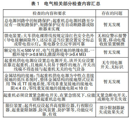 按照企業(yè)特種設(shè)備檢查要求,對(duì)筒倉頂、焦?fàn)t兩 端、篩焦樓、各風(fēng)機(jī)房及廠房內(nèi)電動(dòng)葫蘆設(shè)備進(jìn)行了 檢查,對(duì)所發(fā)現(xiàn)的問題進(jìn)行統(tǒng)計(jì)和歸納,具體如表 1 所示,其他符合要求的項(xiàng)目未一一列出。