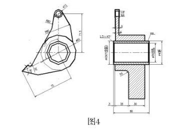棘爪組件主要包括棘爪板、銷軸、軸承。棘爪組件的棘爪板形狀如圖4所示,其中心裝有銷軸,安裝在葫蘆外殼上,棘爪可以繞銷軸作一定角度的擺動,棘爪板上端有軸承,軸承與棘輪組件上的凸輪接觸。