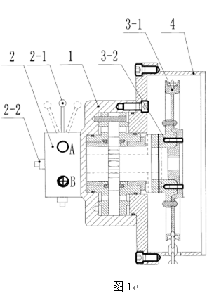 (3) 如圖1所示,集成閥塊2主要由三位四通換向閥2-1、平衡閥2-2組成,其中2-1的功能是控制非圓輪系液壓馬達1的旋轉(zhuǎn)方向,平衡閥2-2的功能是保持1-1運行平穩(wěn),并通過限制其供液系統(tǒng)的高工作壓力來實現(xiàn)對本裝置的大輸出力進行限定。