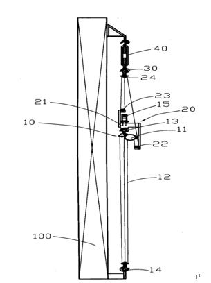 電動葫蘆的鏈條在葫蘆本體的輪系和葫蘆下鉤間繞制形成承重鏈。循環(huán)裝置包括至少一個轉(zhuǎn)向輪,鏈條穿出電動葫蘆的減速機構(gòu)后的部分首先繞過轉(zhuǎn)向輪,并在循環(huán)裝置及掛鉤間繞制形成循環(huán)鏈,循環(huán)鏈位于承重鏈的對面,鏈條穿過轉(zhuǎn)向輪后在循環(huán)裝置及掛鉤上的繞制及固定方式,按照其進入電動葫蘆的動力輪前在葫蘆本體和葫蘆下鉤間的繞制及固定方式設(shè)置。