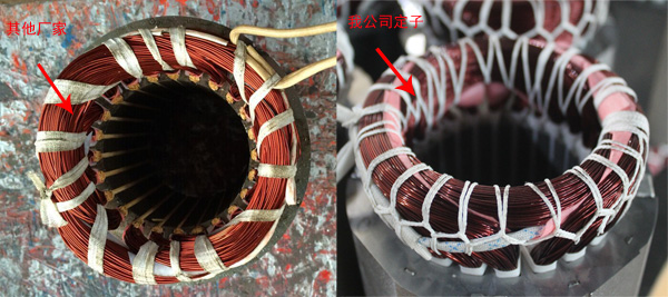 (3)電機(jī)內(nèi)部組件采用60度恒溫烘烤、真空高壓筑漆、再次恒溫烘烤的加工方式。這種加工方式比手工刷漆絕緣效果更好,何況筑漆所選用的漆色非廉價(jià)漆。電機(jī)使用壽命自然更長(zhǎng)!