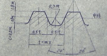 齒形的選擇:根據(jù)葫蘆傳動(dòng)齒輪低速重載,小齒輪齒數(shù)甚小等特點(diǎn)。HSZ型葫蘆選用了齒形角為20°的漸開線特種短齒變位齒輪,其基本齒條的基本參數(shù)如下圖: